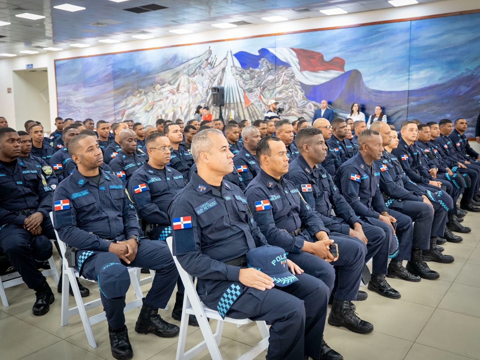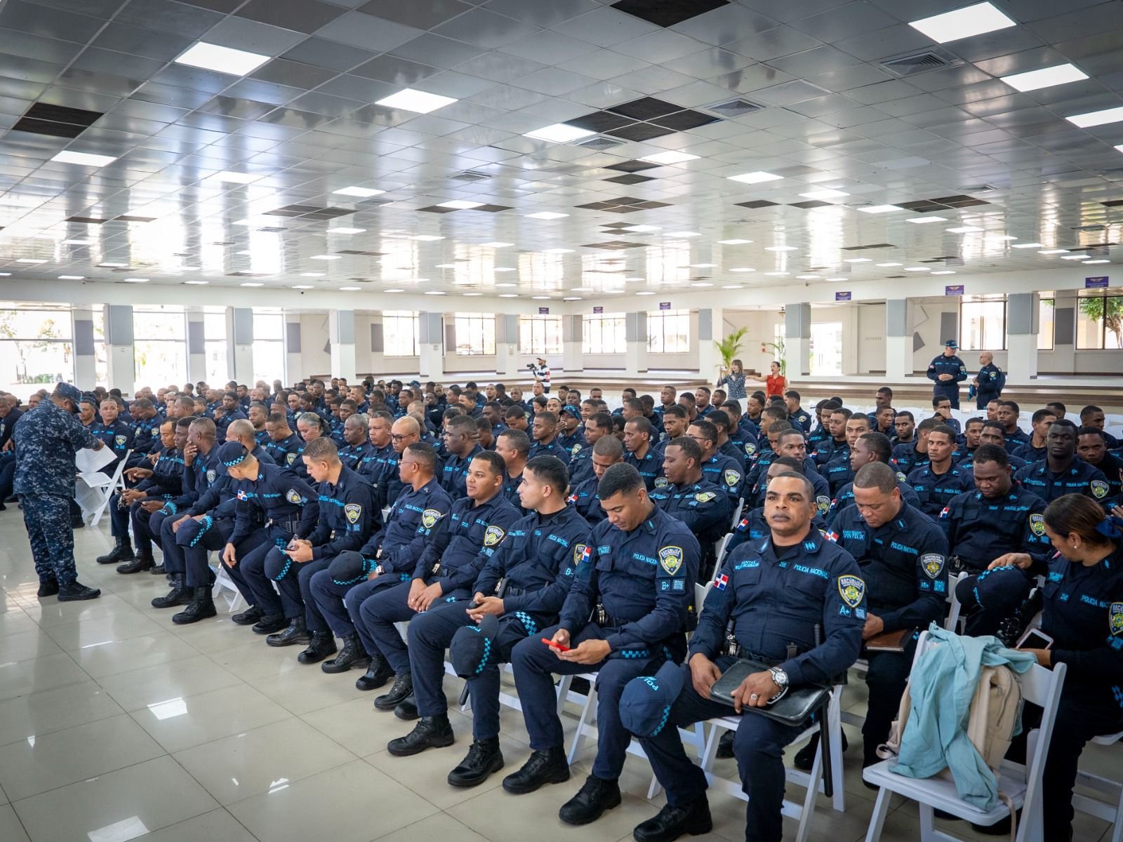 Santo Domingo, R.D.- Autoridades educativas de la Policía Nacional y de la clase civil desarrollan una exitosa jornada de capacitación técnica dirigida a 981 policías del programa piloto del Nuevo Modelo de Servicio Policial (NMSP), con el objetivo de fortalecer sus competencias y promover la ética y la integridad institucional.