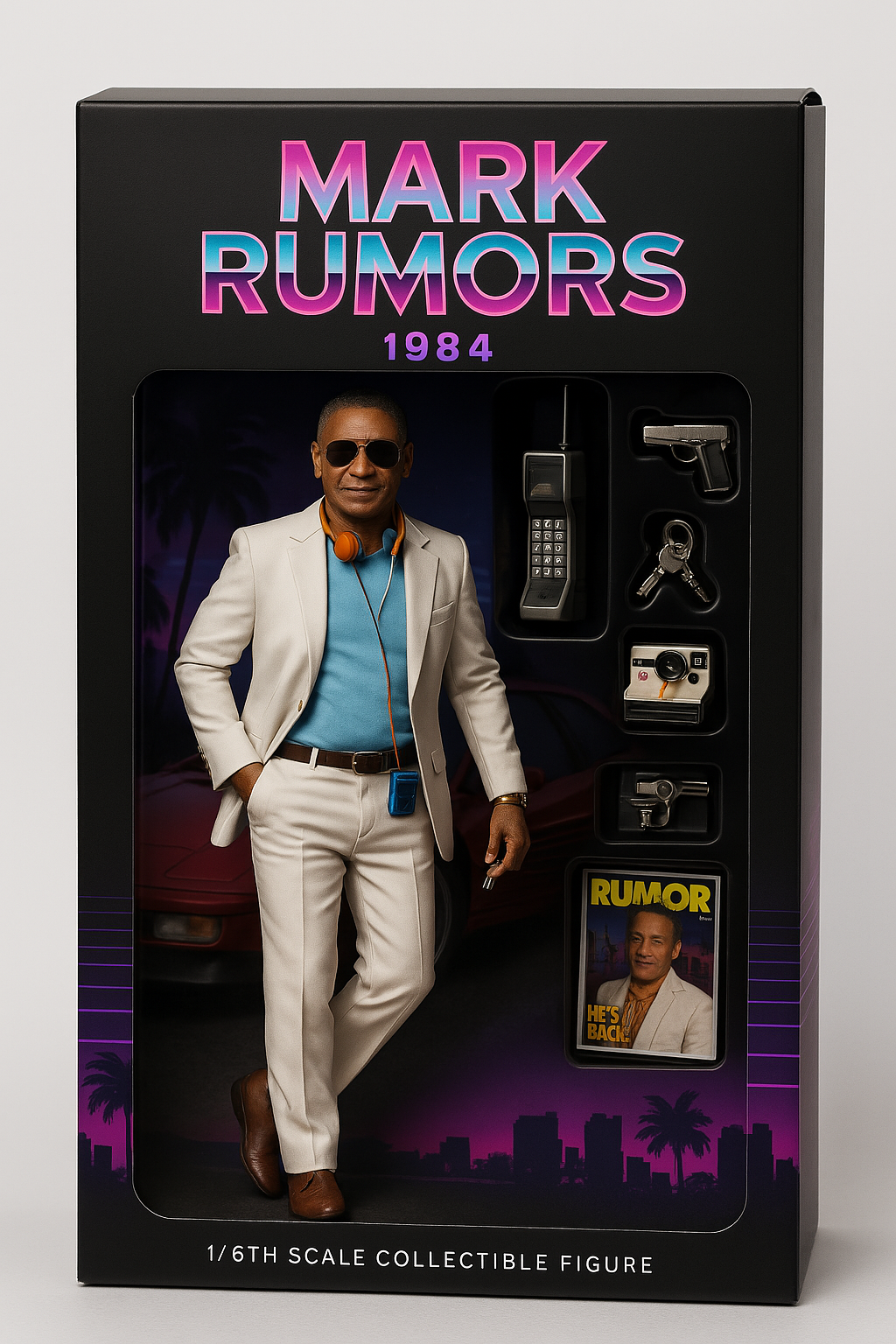 Mark Rumors en modo «figura coleccionable», tendencia popular durante la década de 1980 en honor...