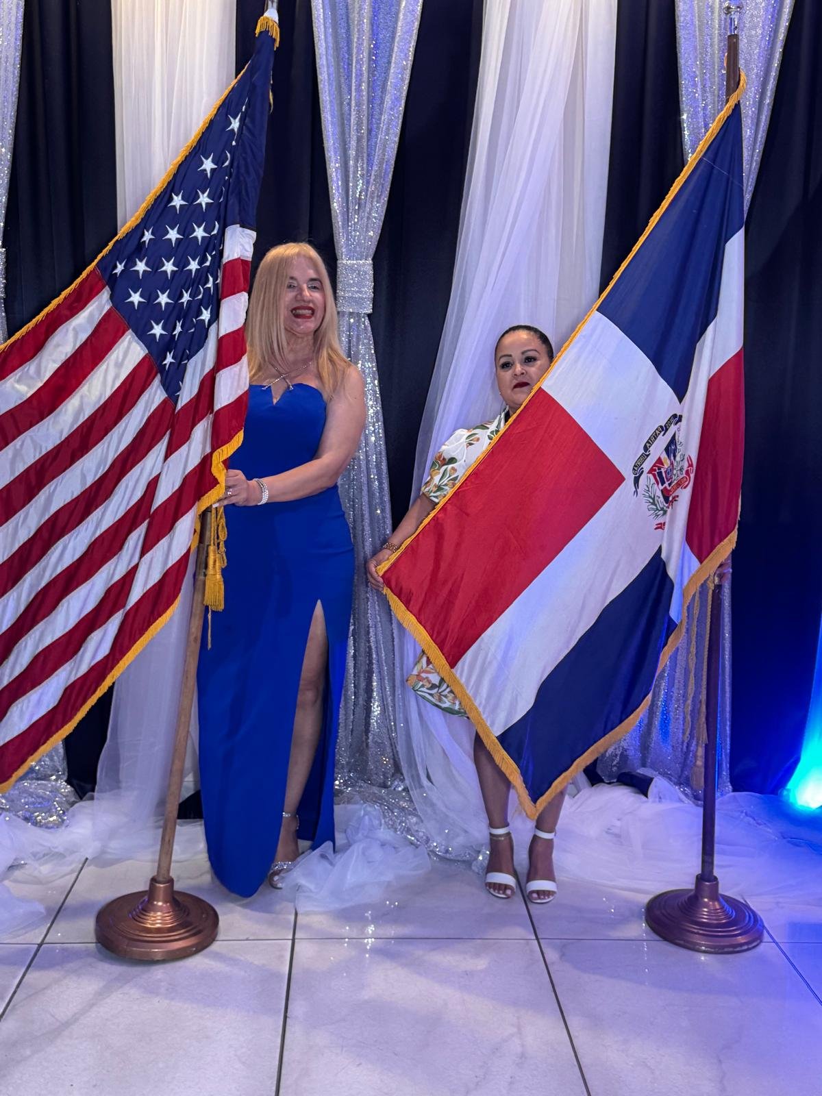 Al inicio del acto, se realizó un desfile de banderas con la de la República Dominicana y de los Estados Unidos, portadas por dos socios quienes las colocaron a ambos lados del podio para dar paso a la entonación de los himnos de ambas naciones.