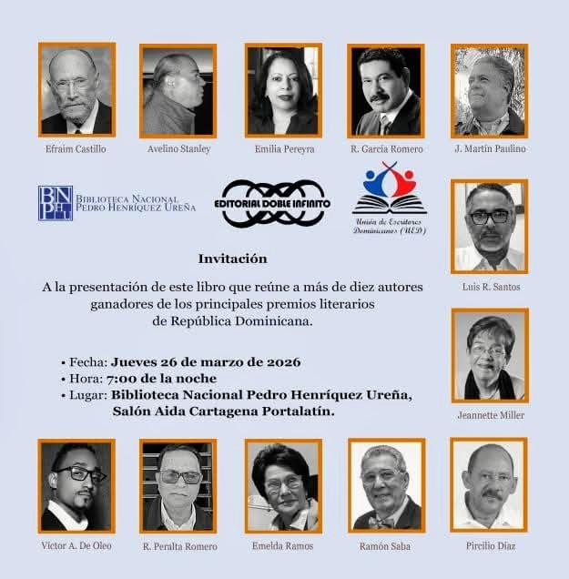 Santo Domingo, R.D. — La Editorial Doble Infinito anuncia la presentación oficial del libro “Recuento: doce voces de la narrativa breve dominicana”, una obra que reúne a destacados autores nacionales en una propuesta que celebra la riqueza y diversidad del cuento como forma literaria.