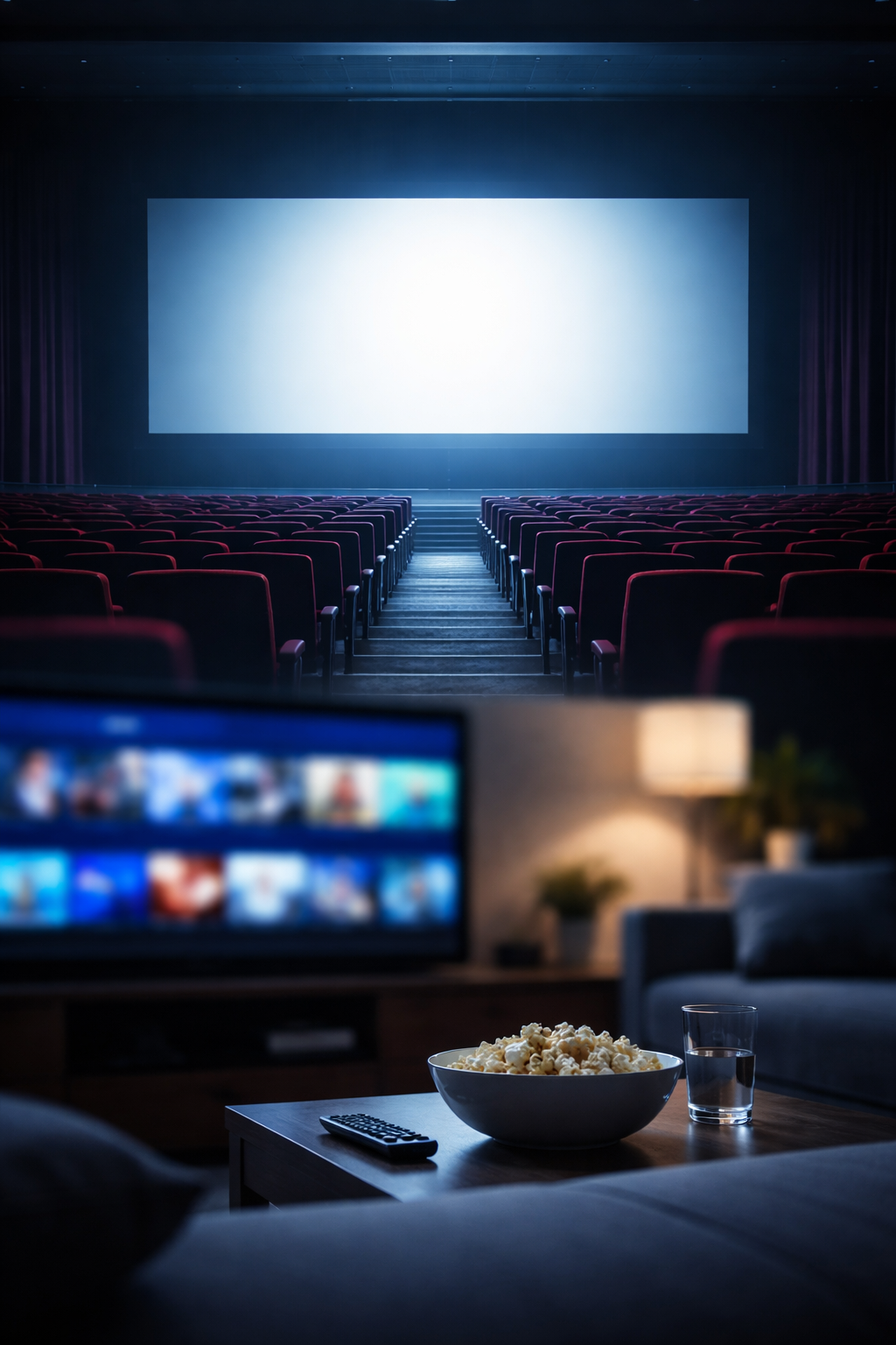 Mientras la sala permanece vacía, la pantalla doméstica concentra la atención: no es la desaparición del cine, sino el desplazamiento silencioso de su centro de gravedad.