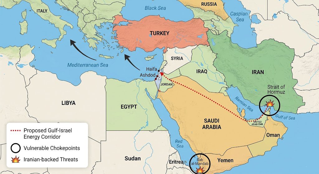 El corazón de la actual escalada bélica no se encuentra solo en los campos de batalla, sino en los planos de ingeniería que Benjamin Netanyahu ha defendido durante años ante la comunidad internacional. La propuesta israelí es una estocada directa a la hegemonía logística de Irán: una red de oleoductos y gasoductos que conecten las monarquías del Golfo directamente con los puertos de Israel en el Mediterráneo. Al derivar el flujo energético hacia Haifa o Ashdod, el mundo dejaría de ser rehén del Estrecho de Ormuz y de Bab al Mandab. Esta infraestructura transformaría a Israel en el nuevo eje energético del Levante, permitiendo a Europa divorciarse definitivamente del gas ruso y reducir la influencia de Qatar e Irán.
