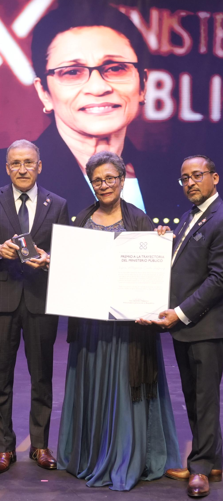 Santo Domingo, R.D.- Con una dilatada carrera de 52 años en la función pública, la magistrada Gisela Altagracia Cueto González recibió un reconocimiento por su trayectoria en el “Premio al Mérito” del Ministerio Público celebrado la noche del domingo.