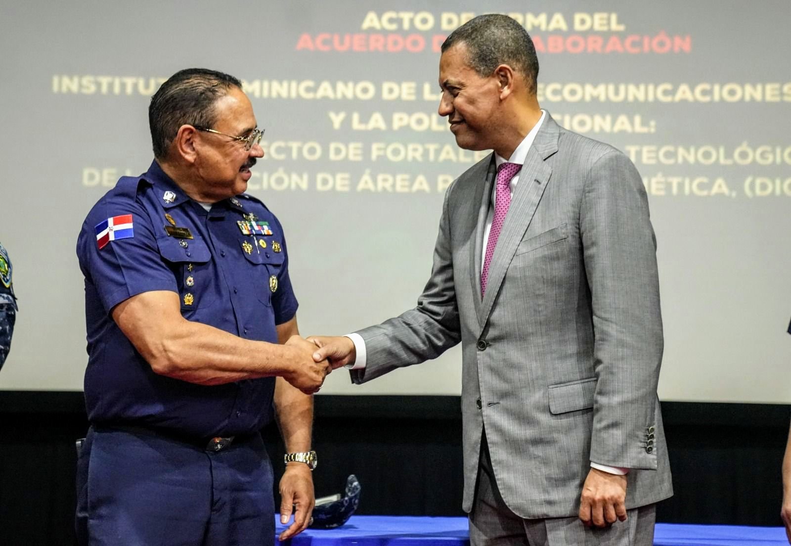El acuerdo fue suscrito por Guido Gómez Mazara, presidente del Consejo Directivo del Indotel, y, en representación del director general de la Policía Nacional, por el general Juan Hilario Guzmán Badía, subdirector general de la institución.