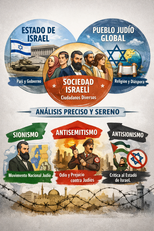 Para comprender con mayor profundidad el debate internacional que rodea al Estado de Israel, es necesario introducir tres conceptos que con frecuencia se utilizan de manera indistinta en el discurso público: sionismo, antisemitismo y antisionismo. Aunque están relacionados en la discusión política contemporánea, representan fenómenos históricos y conceptuales distintos.