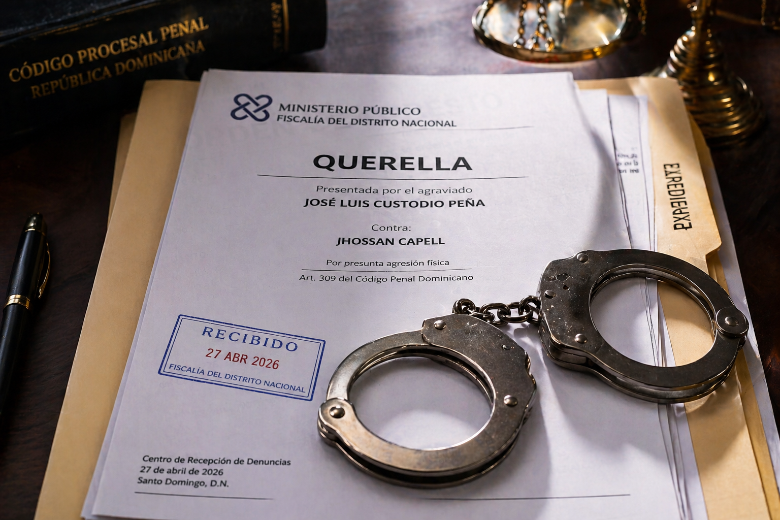 José Luis Custodio Peña formaliza querella contra Jhossan Capell por agresión física ocurrida en el Palacio de Justicia de Ciudad Nueva