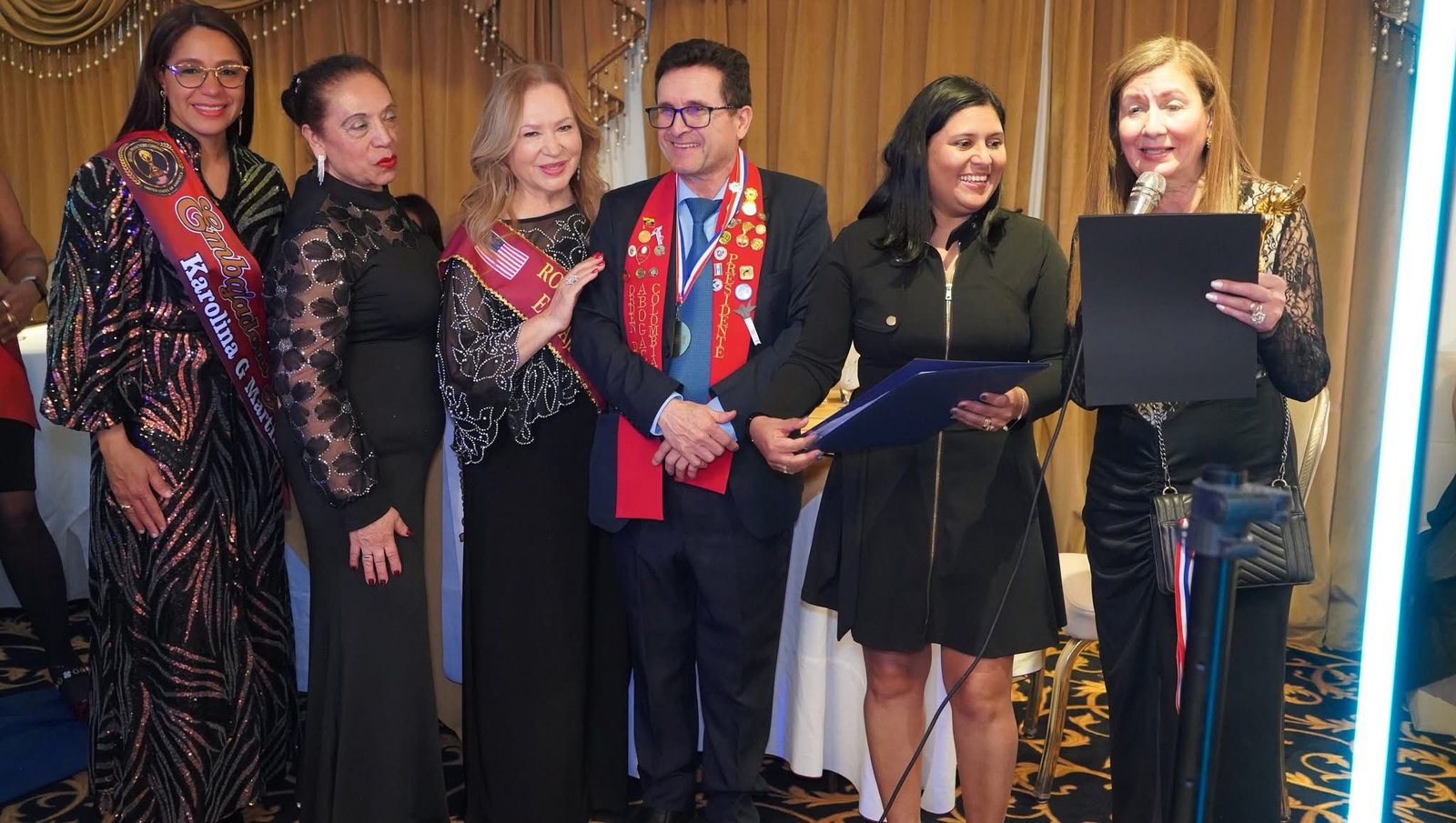 Durante el evento, Karolina G. Martínez también tuvo a su cargo parte de la maestría de ceremonias y presentó a la presidenta de A.R. Global Production, la Dra. H.C. Ana Rivilla, creadora de este importante movimiento internacional. En sus palabras, Ana Rivilla destacó la misión de la organización, enfocada en exaltar el liderazgo femenino, promover el arte y fortalecer las causas sociales.