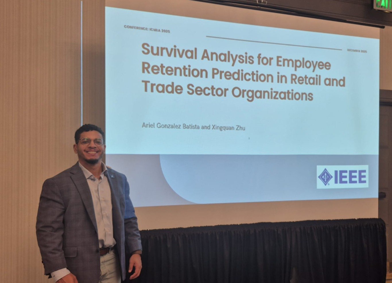 El Ing. Ariel González Batista MS, egresado de la PUCMM y la FAU, presentó una investigación de vanguardia en el Simposio Mundial IEEE 2025 sobre Machine Learning y Computación (MLCM 2025), celebrado del 3 al 5 de diciembre en Estados Unidos.