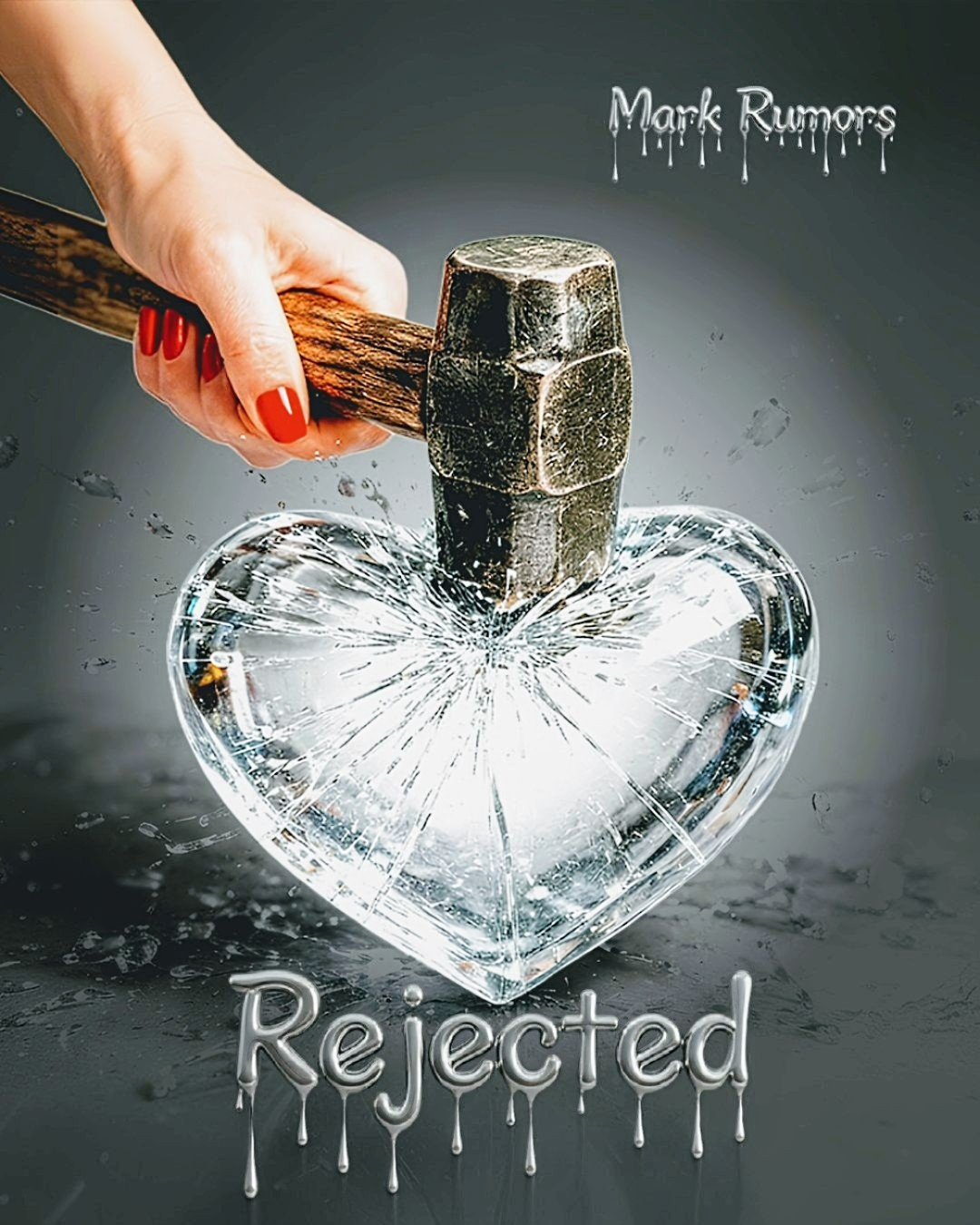 Portada alterna del sencillo «Rejected» de Mark Rumors, en la cual muestra al corazón fracturado sostenido ahora por una mano masculina, con grietas selladas en dorado y la mandarria abandonada en segundo plano, introduciendo una lectura distinta que no proyecta contraataque, sino reconstrucción.