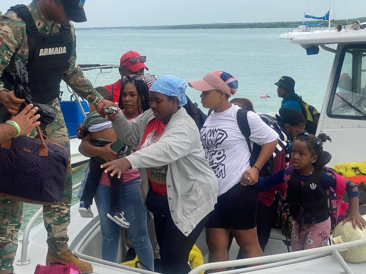 Las personas evacuadas fueron trasladadas de manera segura al Puerto de Bayahibe, donde recibieron asistencia de los organismos de socorro.
