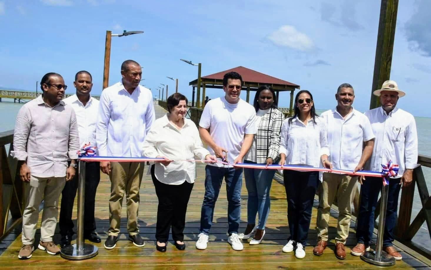 El ministro de Turismo, David Collado, inauguró la reconstrucción del muelle turístico del municipio de Miches, acompañado de autoridades locales.
