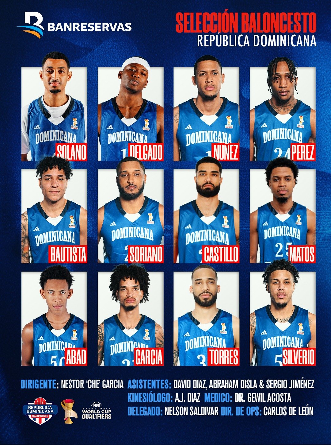 Santo Domingo, R.D.- El dirigente Néstor -Ché- García hizo público la tarde del miércoles el plantel de 12 jugadores del equipo nacional de basket de mayores que jugará ante Estados Unidos, en la Segunda Ventana Clasificatoria a la Copa Mundial Catar 2027.