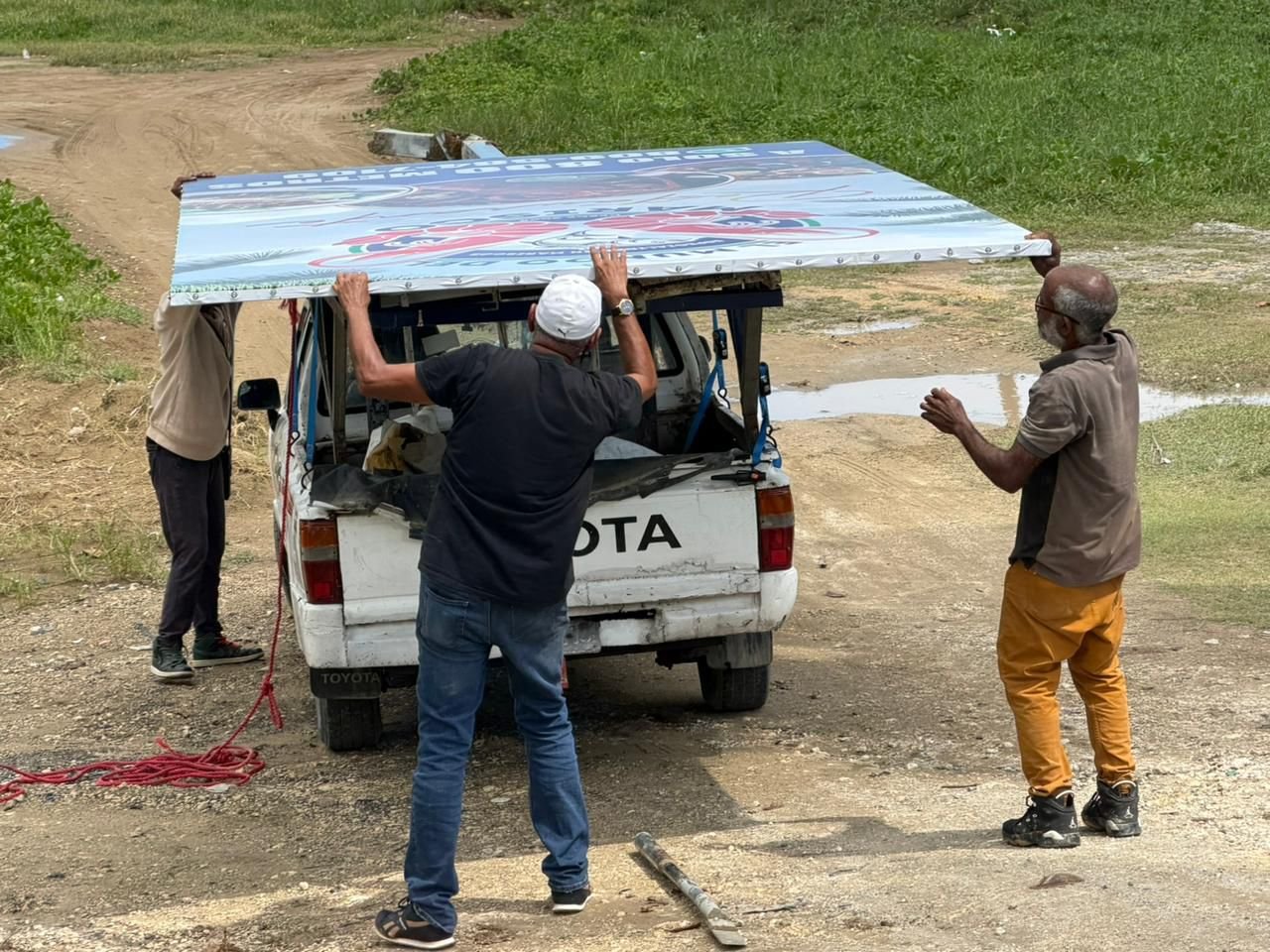 Brigadas del Instituto Nacional de Tránsito y Transporte Terrestre (Intrant), RD vial y del Ministerio de Obras Públicas y Comunicaciones (MOPC) continúan con el retiro de vallas publicitarias en el distrito turístico Verón–Punta Cana.