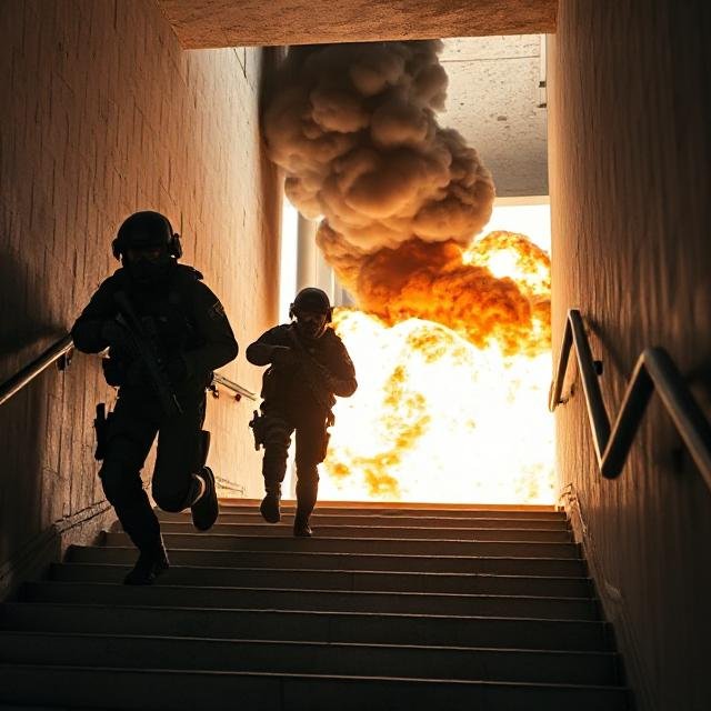 El Equipo de Rescate de Rehenes ya había avanzado en su incursión hacia el piso de la escena y de paso verificaron que las cargas de explosivos colocadas en áreas de estructura clave no estaban operacionales, lo que validó que parcialmente provocaran un corte energético y así garantizar el uso de actuación de las.mismas.