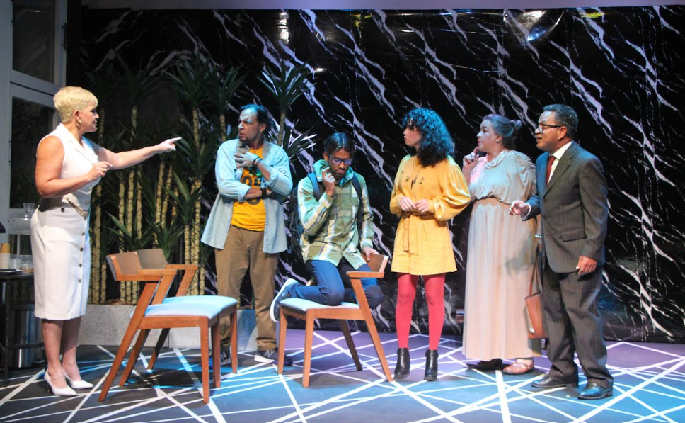 Los talentos (Gianni Paulino – Nosofobia; Exmín Carvajal – Síndrome de Tourette; Patricia Muñoz – Verificación; Henssy Pichardo – Aritmomanía; Cindy Galán – Ecolalia; y Erlyn Saúl – Simetría) asumen sus condiciones a partir de las situaciones inteligentemente expuestas por el dramaturgo: síndromes o tics psicológicos reales, clínicamente definidos (apele usted a Google, por favor), para generar un cuadro hilarante con sub líneas argumentales que se entrecruzan.